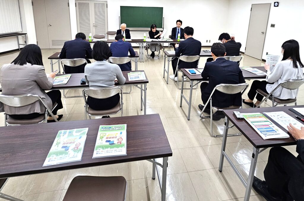 令和7年12月5日、城南信用金庫雪ヶ谷支店において、金融機関向けキャッシュレス納付研修会が開催されました。当日は、雪谷税務署から坂元統括国税徴収官・菊池課長補佐、城南信用金庫雪ヶ谷支店から富崎副支店長および若手行員の皆さまが参加されました。雪谷納税貯蓄組合連合会からは、オブザーバーとして近藤名誉会長と川上副会長が出席しました。